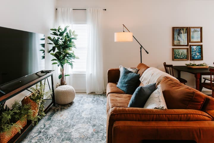 Enjoy a prime Athens location with easy city access. Our bright 1BD/1BA Artist Home features an open layout, high-speed WiFi, smart TV, comfy queen bed with Purple mattress, stainless steel appliances, and a covered porch.