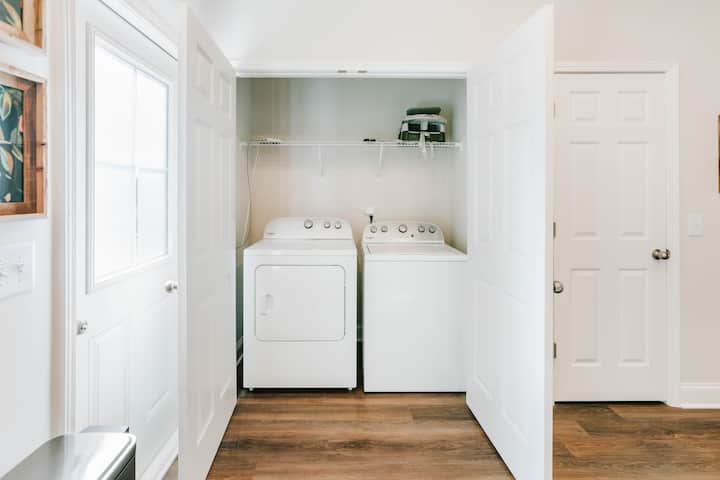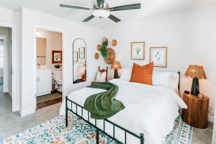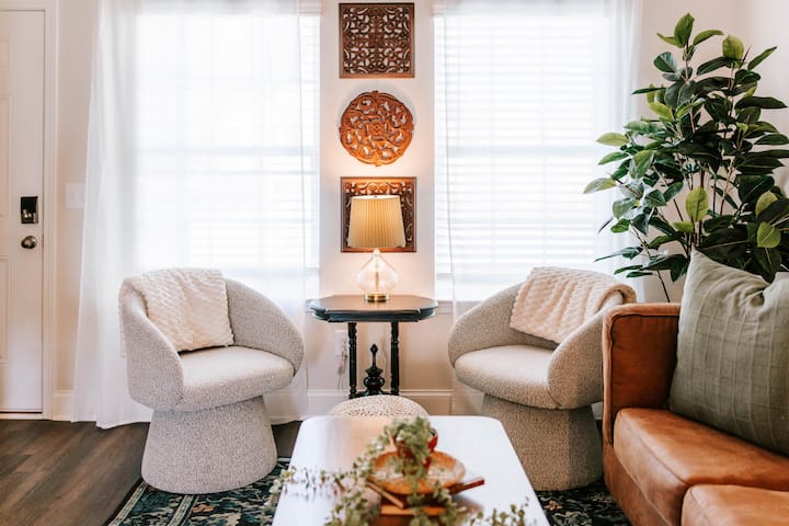Enjoy comfort at Old Capital, our professionally designed retreat, just minutes to Downtown Milledgeville, Georgia College, and Lake Sinclair. This bright, modern home sleeps 5 and features high-speed WiFi, smart TVs, a fully stocked kitchen, and comfortable bedrooms designed for easy, relaxing stays.